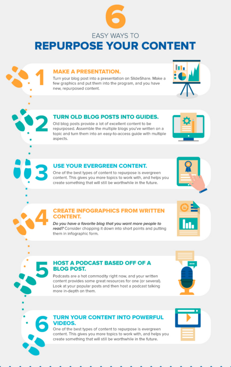 Not only do you breathe new life to old content by remarketing it to a newer audience, but you can also update it, add new information, and put it up in a different format or medium.